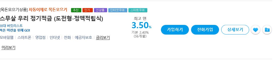 [20대 적금 추천] 최고 3.5% 우리은행 스무살 우리 정기적금