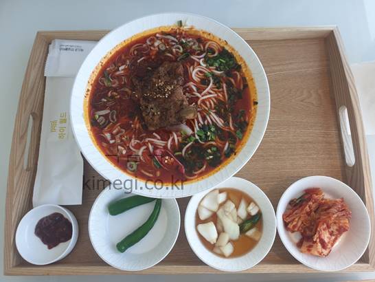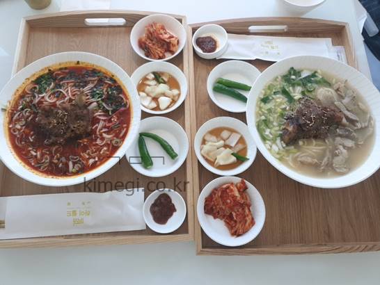 저희는 고기국수 갈비 추가와 하갈 비 국수 매운맛을 주문했습니다.