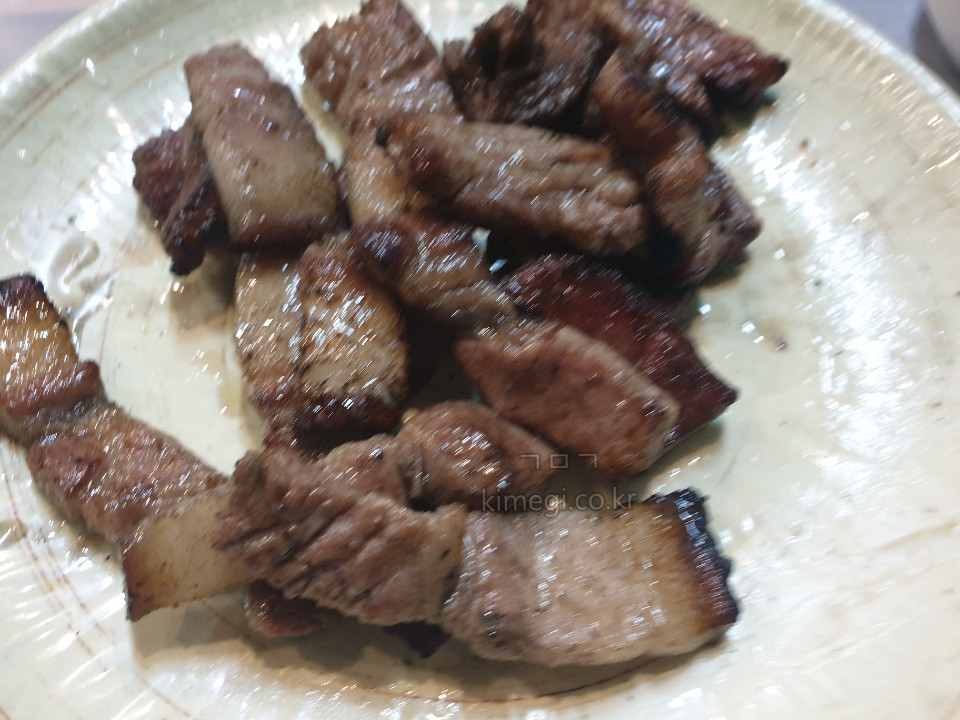 목살인데 기름기가 많아서 삼겹살 굽듯이 구워야 해요.