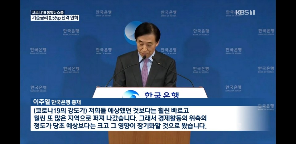 한은 기준금리 1.25% -> 0.75 전격 인하 결정