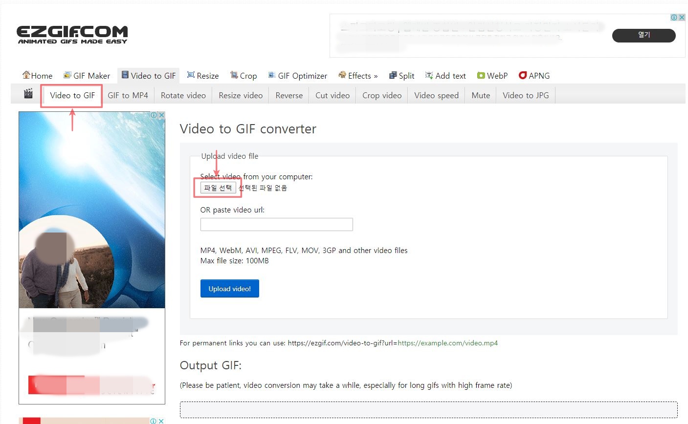 Video to GIF 항목이 기본으로 설정되어 있습니다.