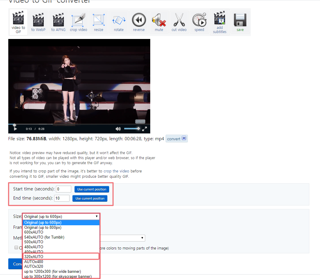 Video to GIF 항목이 기본으로 설정되어 있습니다.