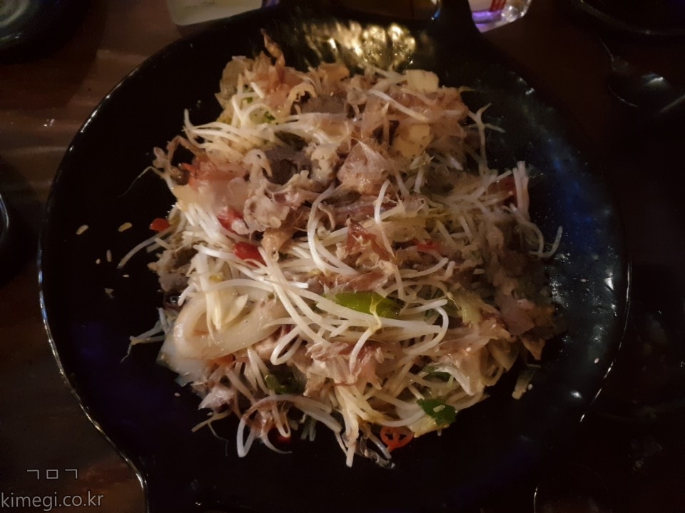 술집에 단골 안주 차돌 숙주 볶음입니다.