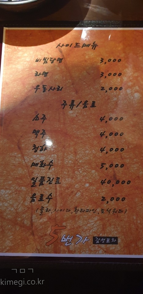 오번가 메뉴판인 입니다.