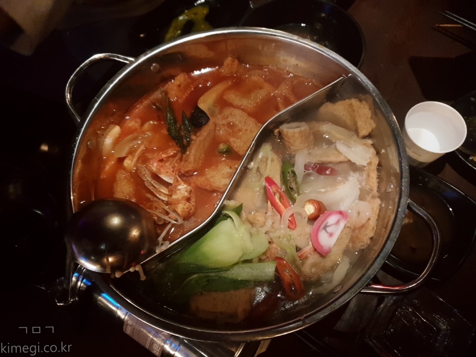 어묵탕이 훠거처럼 두 가지 맛으로 나와요.