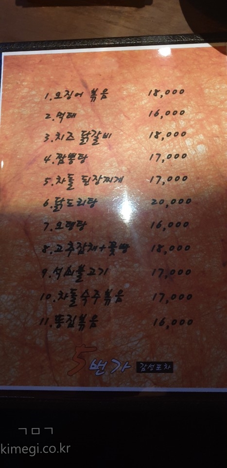 오번가 메뉴판인 입니다.