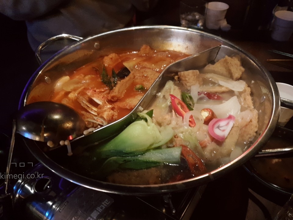 어묵탕이 훠거처럼 두 가지 맛으로 나와요.