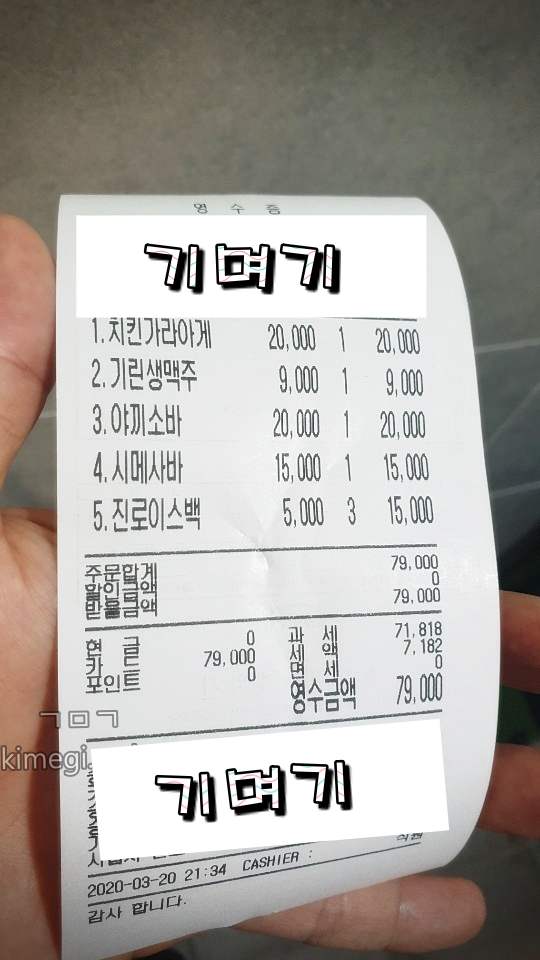 2차가 너무 많이 나왔어요. 기린 생맥이 9천 원이었네요.