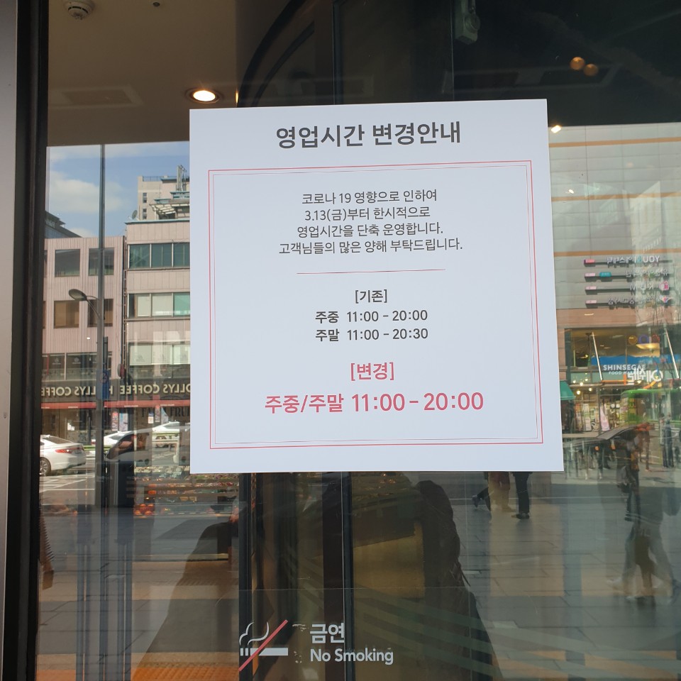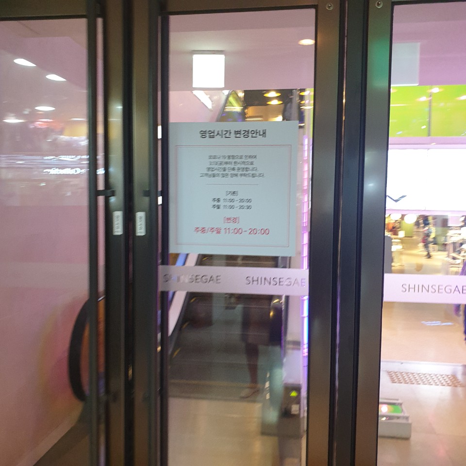 신세계 백화점도 영업시간을 단축했어요.