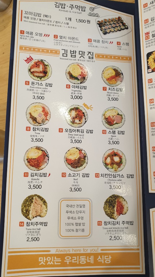 분식점은 메뉴가 많아서 좋으면서 고르기가 어려워요.