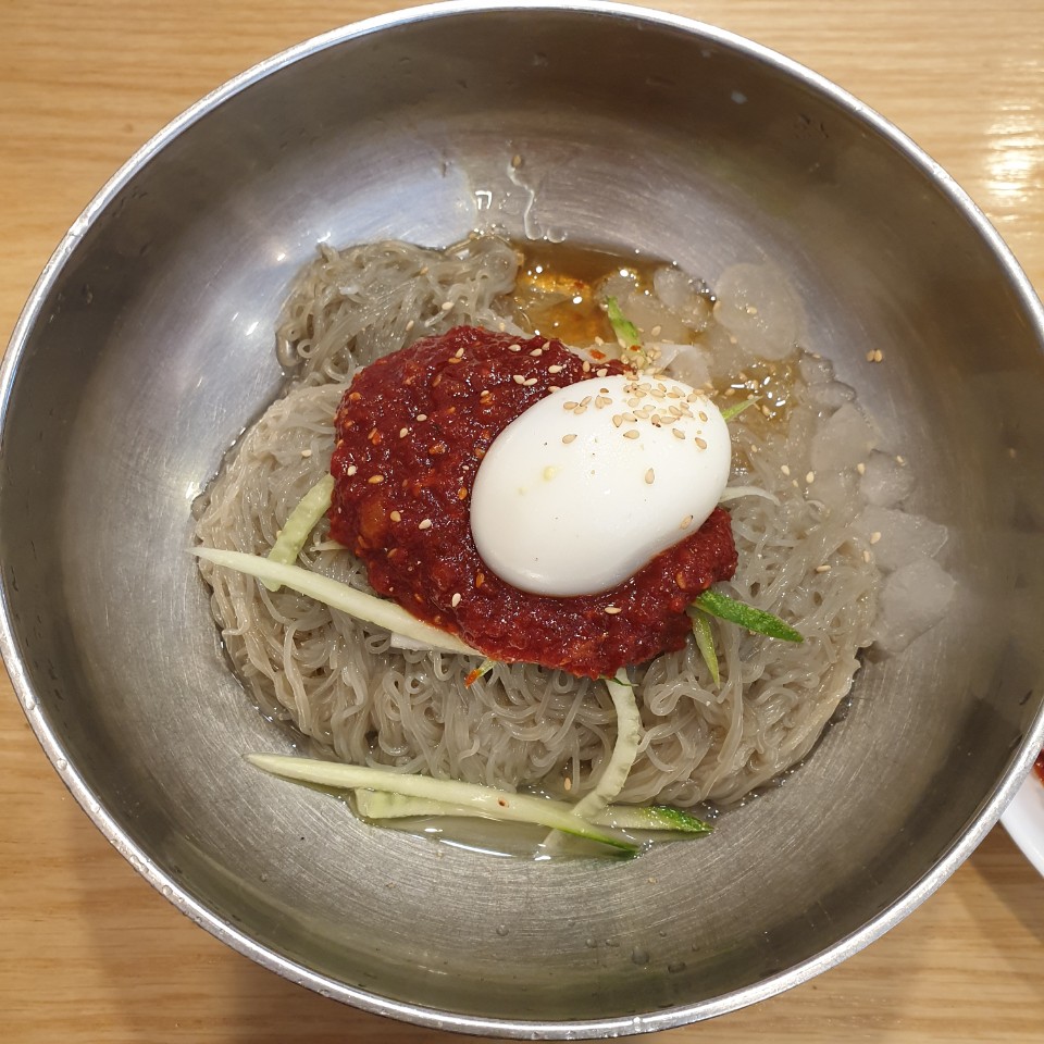 비빔냉면에 육수를 조금 넣어서 먹는 것을 좋아해서