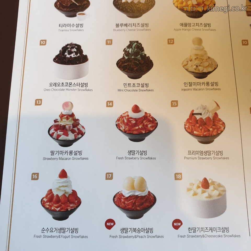 보자마자 생딸기 복숭아 설빙이 끌렸어요.