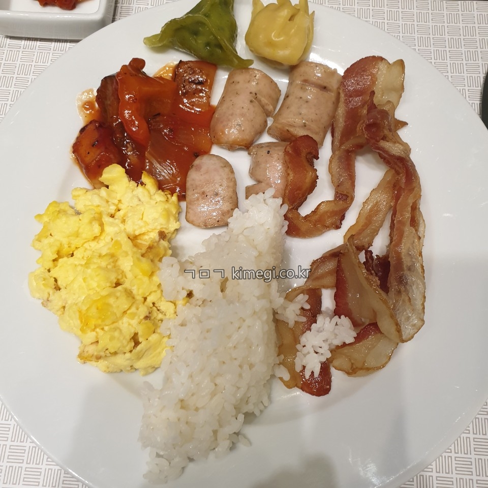 조식은 항상 베이컨과 소시지 스크램블과 밥을 먹어줘야죠.