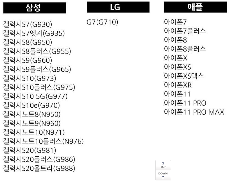 거의 모든 핸드폰 종류가 준비되어 있어요.