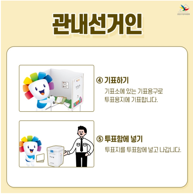 그래서 내가 투표를 해야 할 선거구에 위치한 투표소에서 투표를 하면 관내 선거인