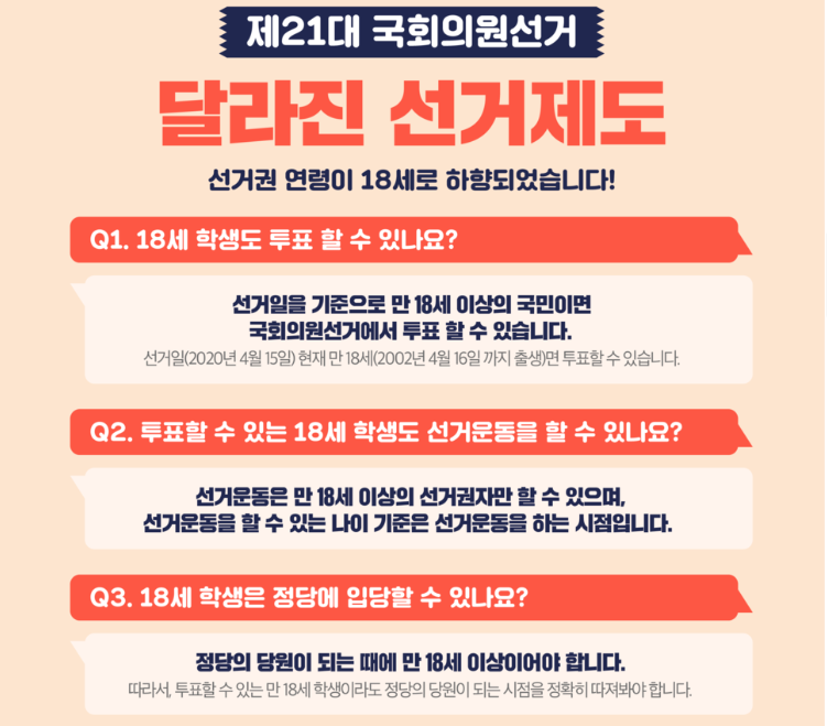 [제 21대 국회의원 선거] 4월 15일 달리진 제도와 투표 방법(18세 투표 가능)