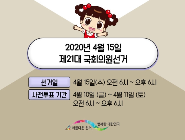 20년 4월 15일은 제21대 국회의원 선거가 있는 날입니다.