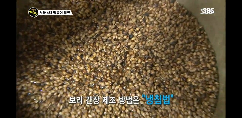 볶은 보리에 간장을 담가 놓고 낮은 온도에서 이틀간 우려내는 냉침법으로 만든 간장이라고 합니다.