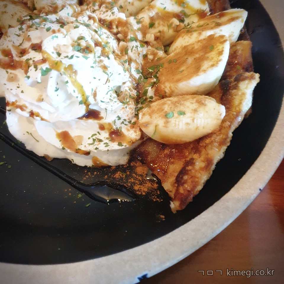 꿀호떡입니다. 호떡에 바나나 생크림에 꿀을 또 뿌려 줍니다.