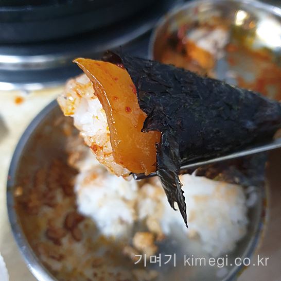 김치의 짠맛을 김이 중화시켜 주면서 감칠맛을 더해줍니다.