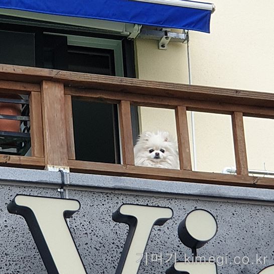 입구에 들어서면 2층에서 자기가 사자인 줄 아는 포메라니안이 반겨줍니다.