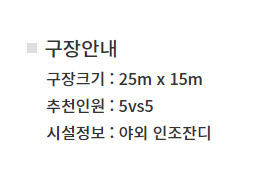 B구장은 25m * 15m로 5대 5가 가능한 크기입니다.