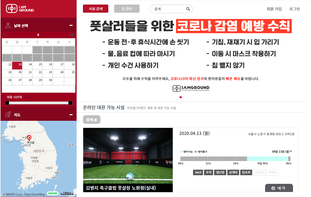 아이엠그라운드에서 중계 하라 풋살장을 예약했습니다.