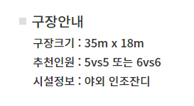 A구장은 35m * 18m 로 6대 6이 가능할 정도의 크기였어요.