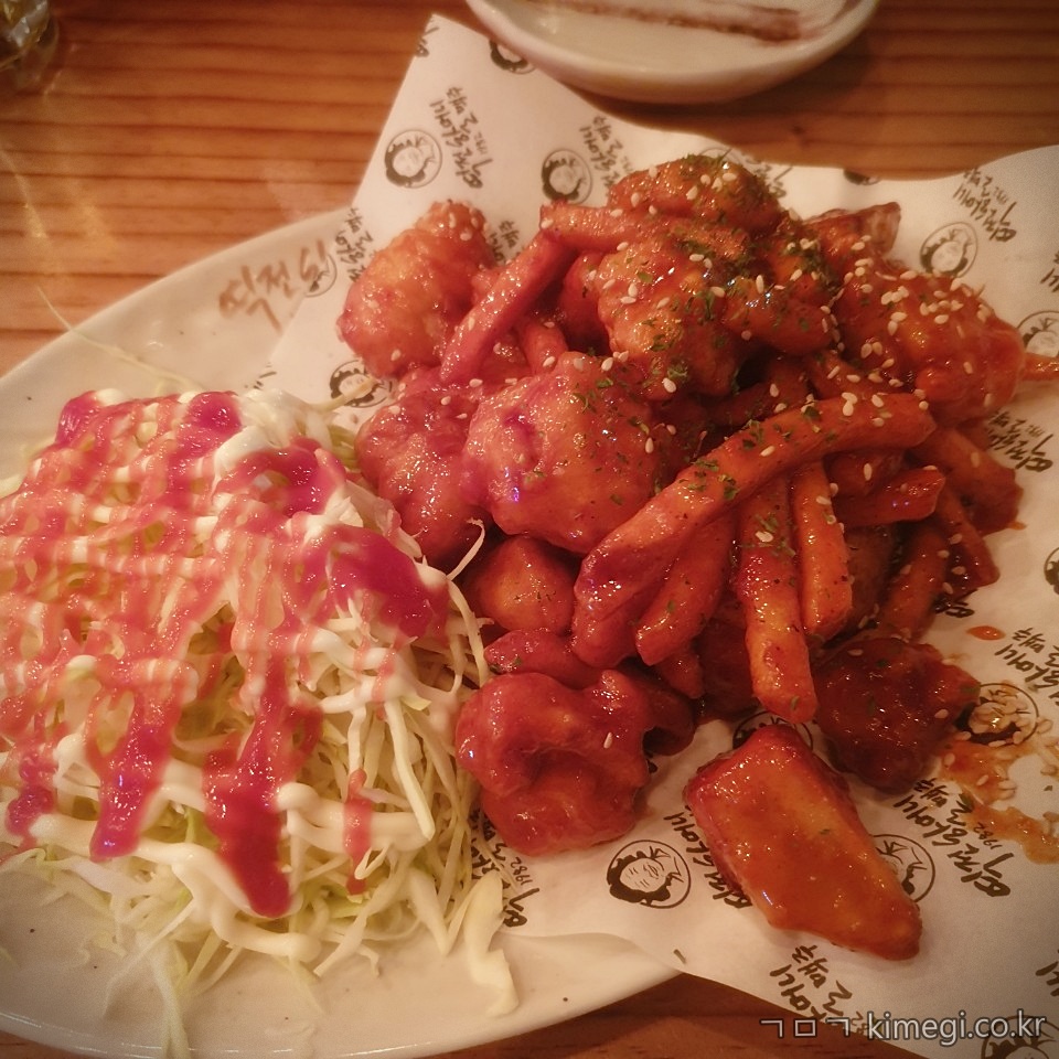 감자튀김과 같이 양념에 버무려 주셨어요.
