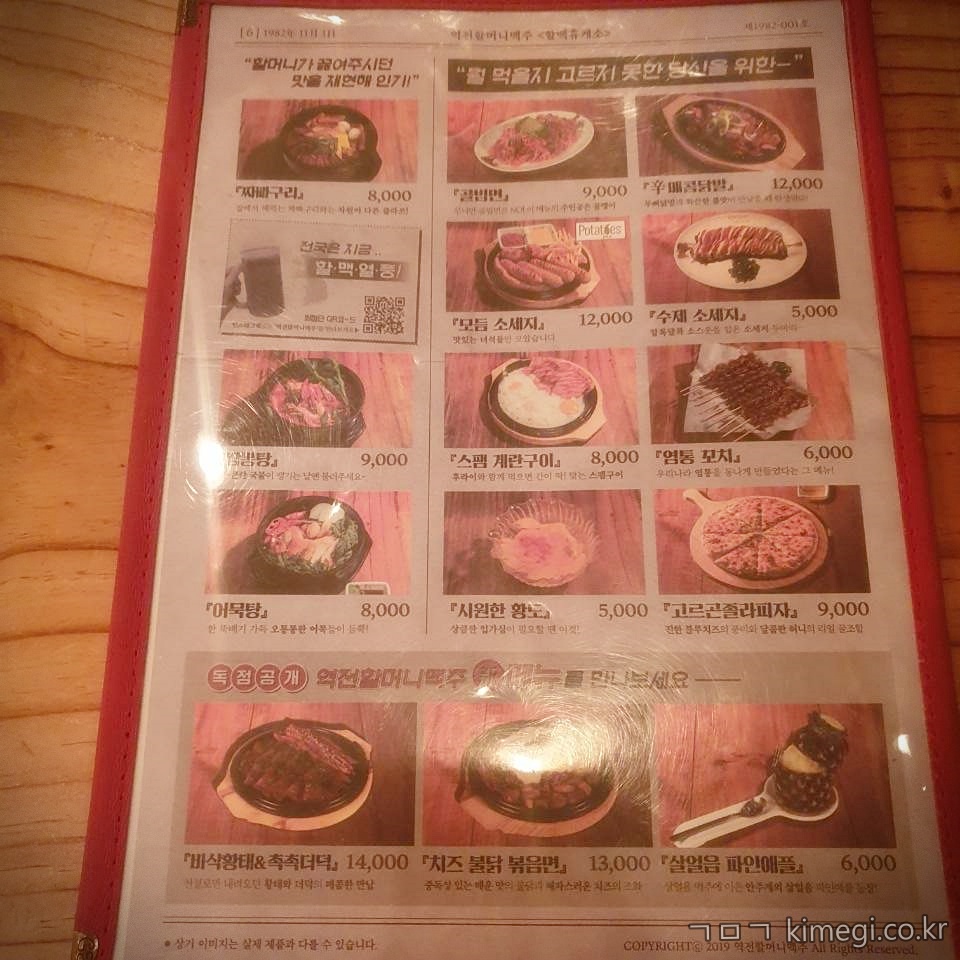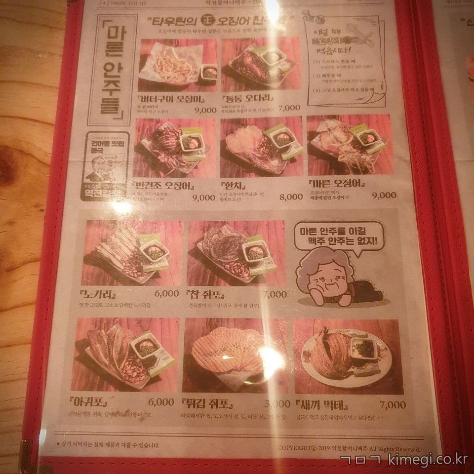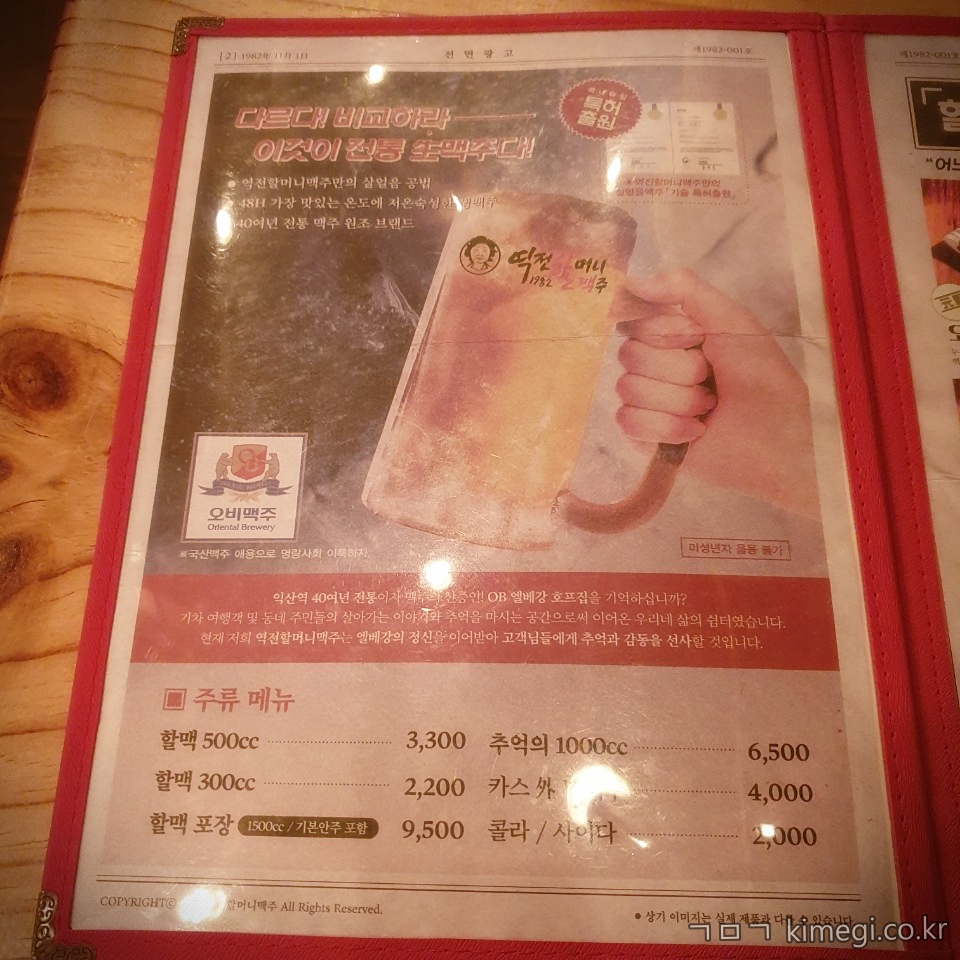 역전 할머니 맥주 메뉴판입니다.