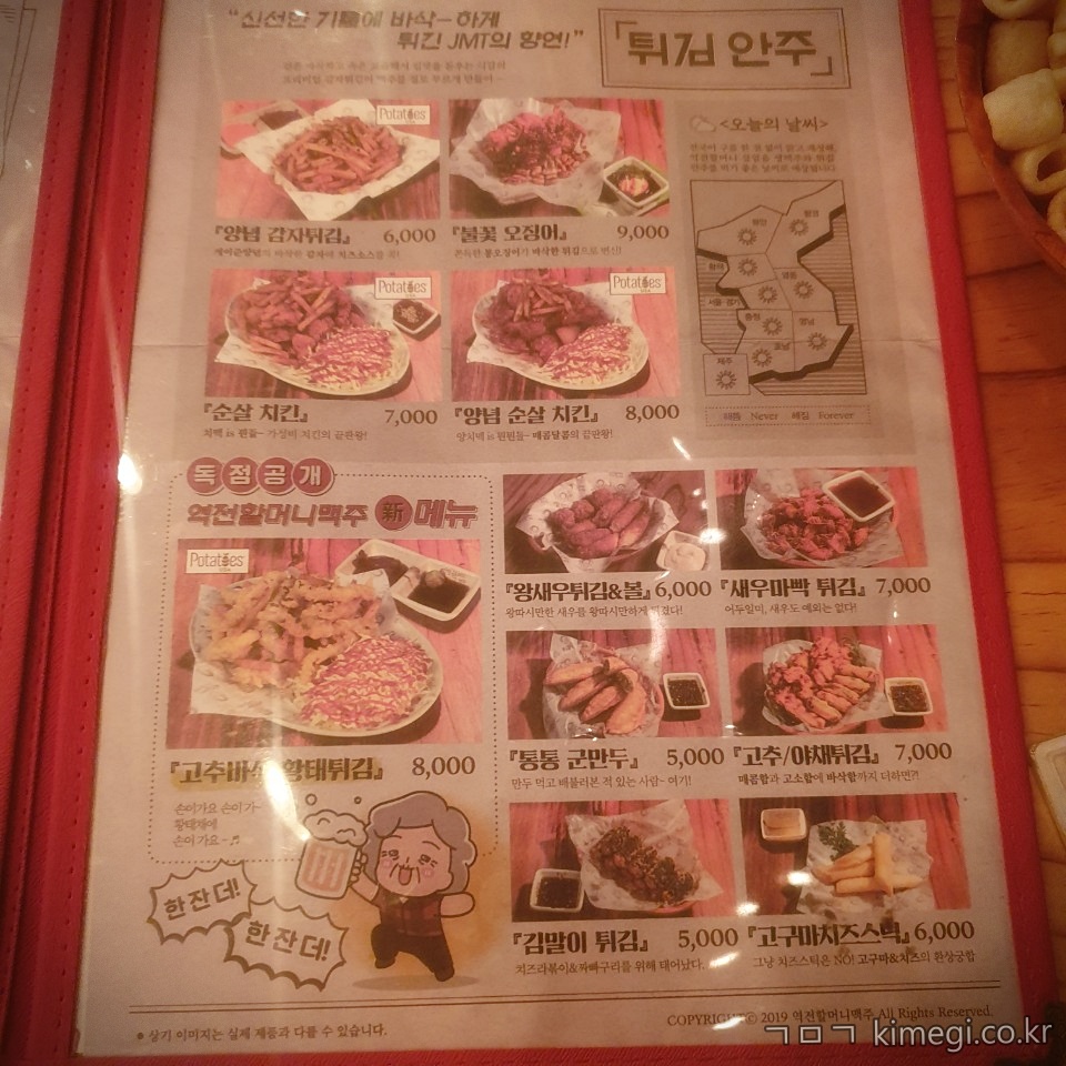 저렴한 가격대의 안주가 구성되어 있어요.