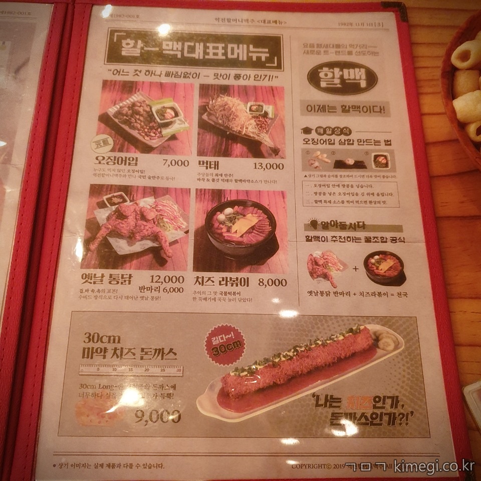 할맥 대표 메뉴입니다.