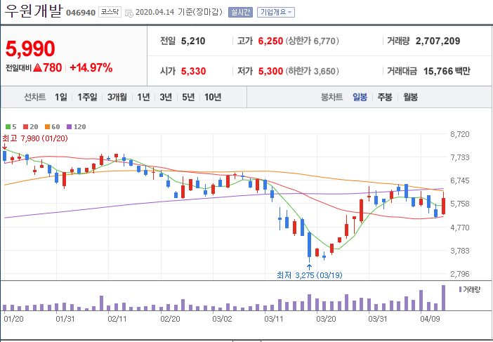 화요일에 우원개발을 팔았어야 했는데 생각을 못했어요.