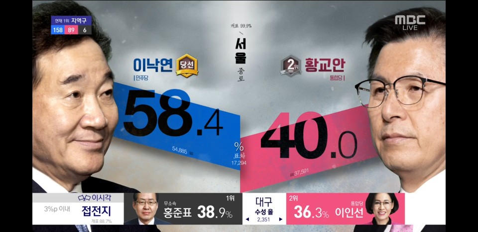 이번 선거에 가장 대장들의 싸움인 서울 종로구에서 민주당 이낙연 후보가 압승했습니다.
