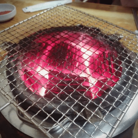 숯불이라서 정말 고기 잘 구워야 해요.
