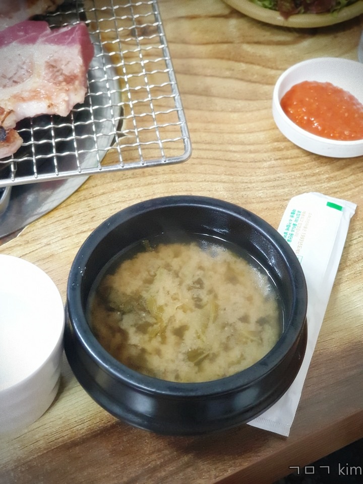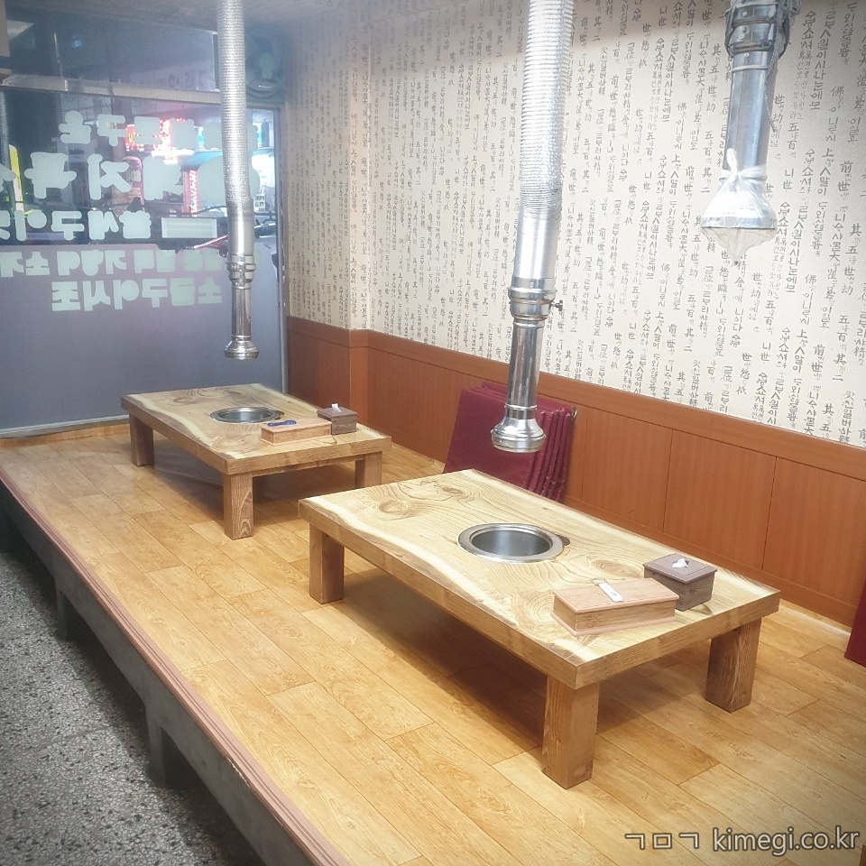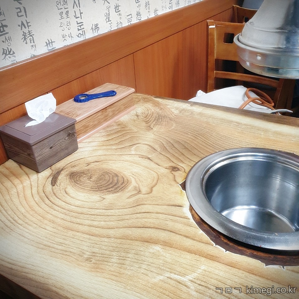 고깃집 테이블은 보통 끈적하게 기름이 코딩되어 있는데 오래 사용한 테이블이지만 정말 깨끗했어요.