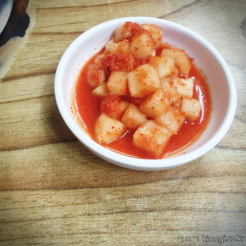 배추김치 대신 깍두기가 나와요.