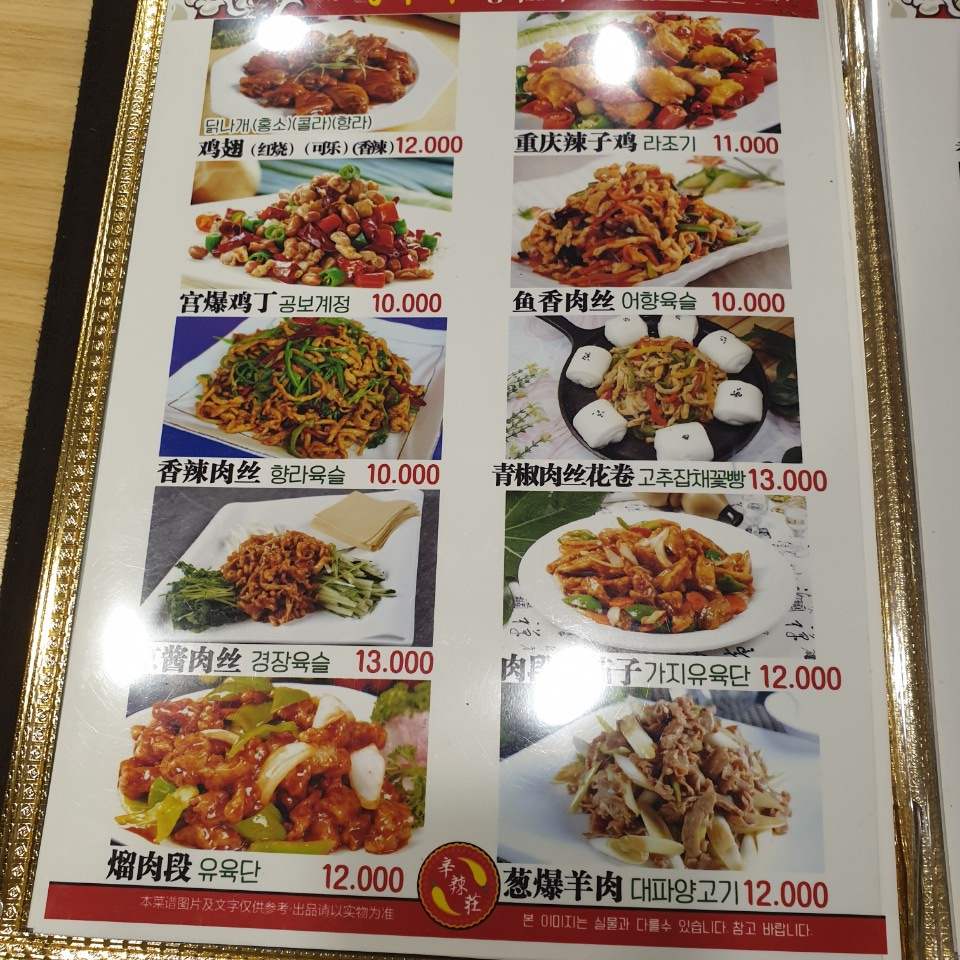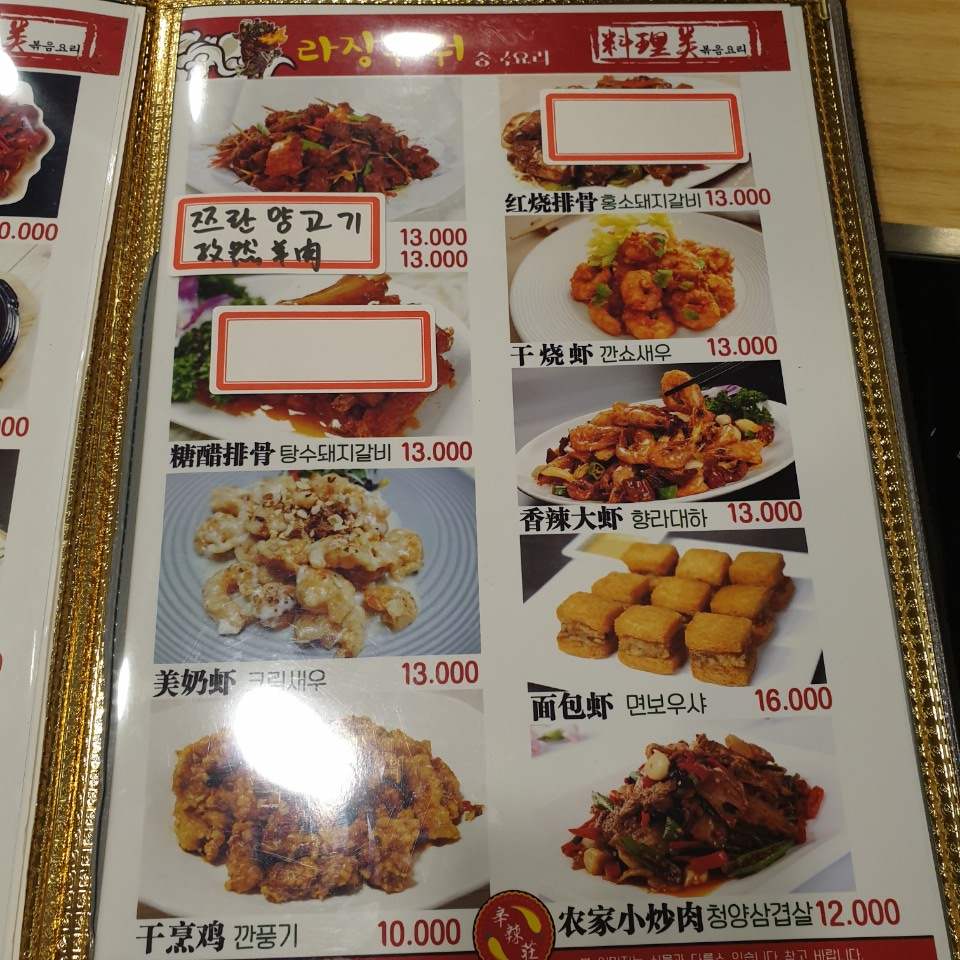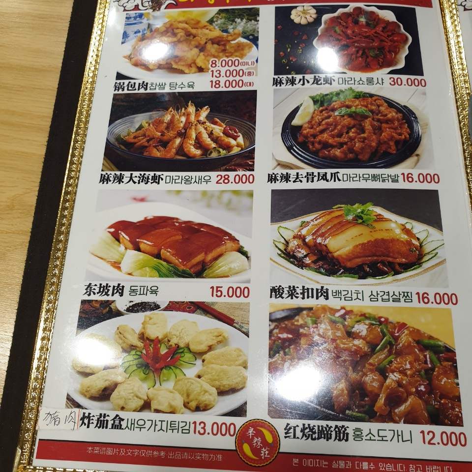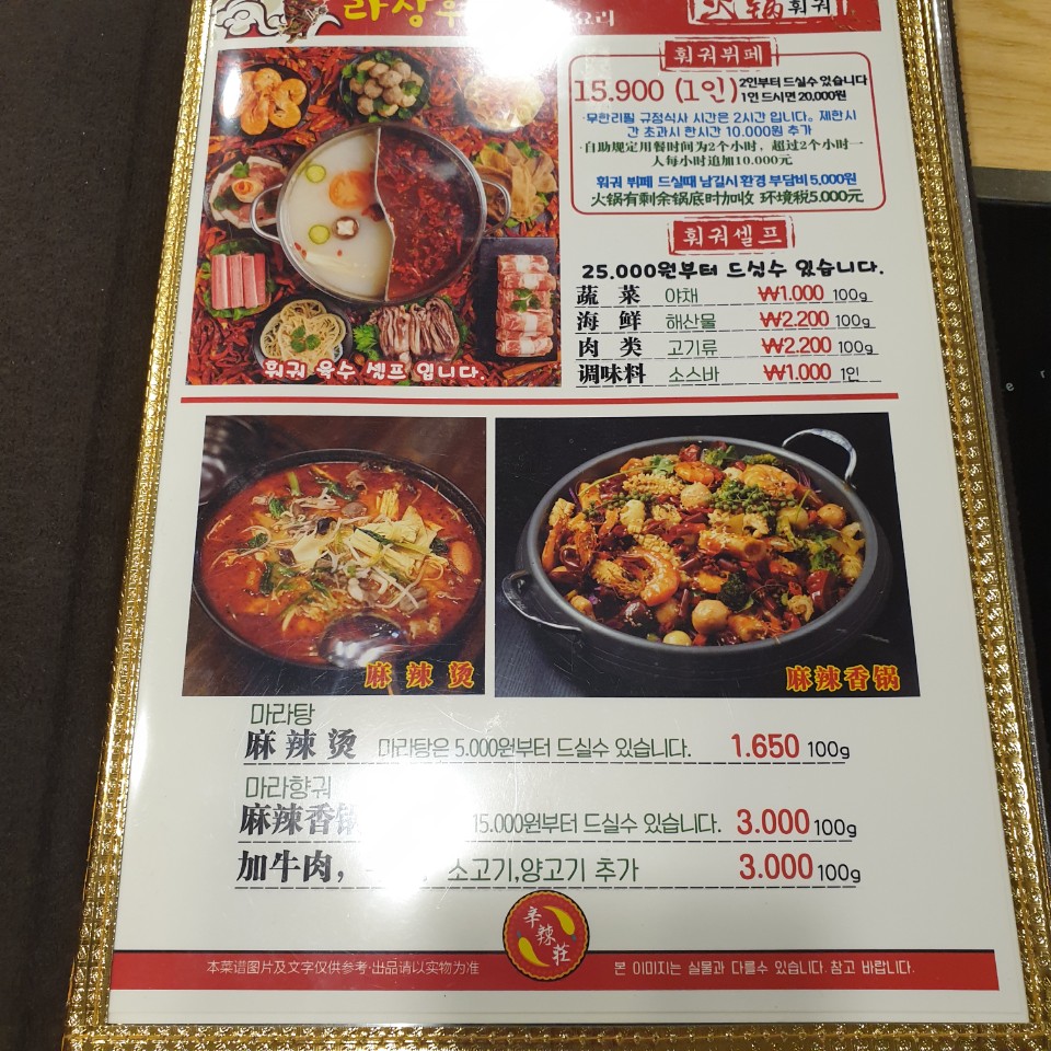 라장훠궈 메뉴판