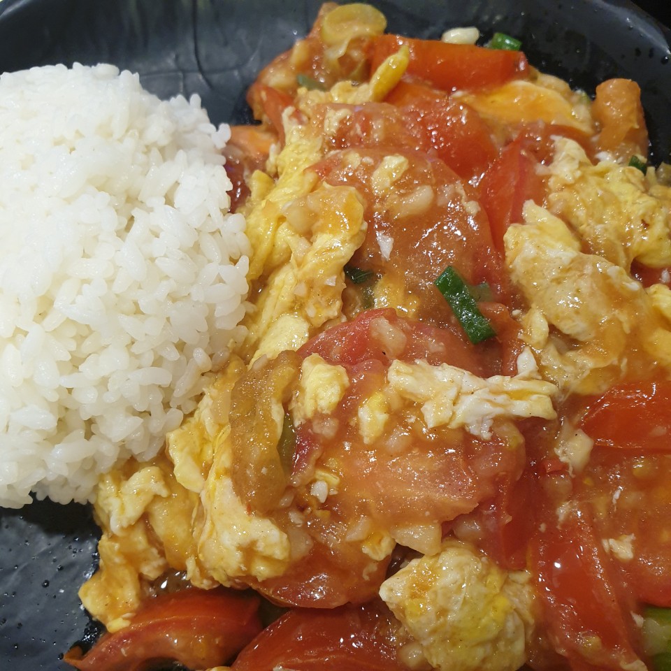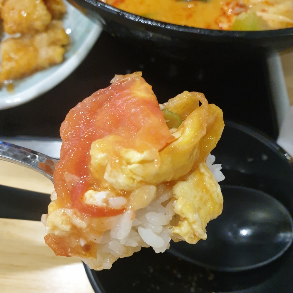 계란 토마토 덮밥도 나와서 다시 같이 찍어봐요.