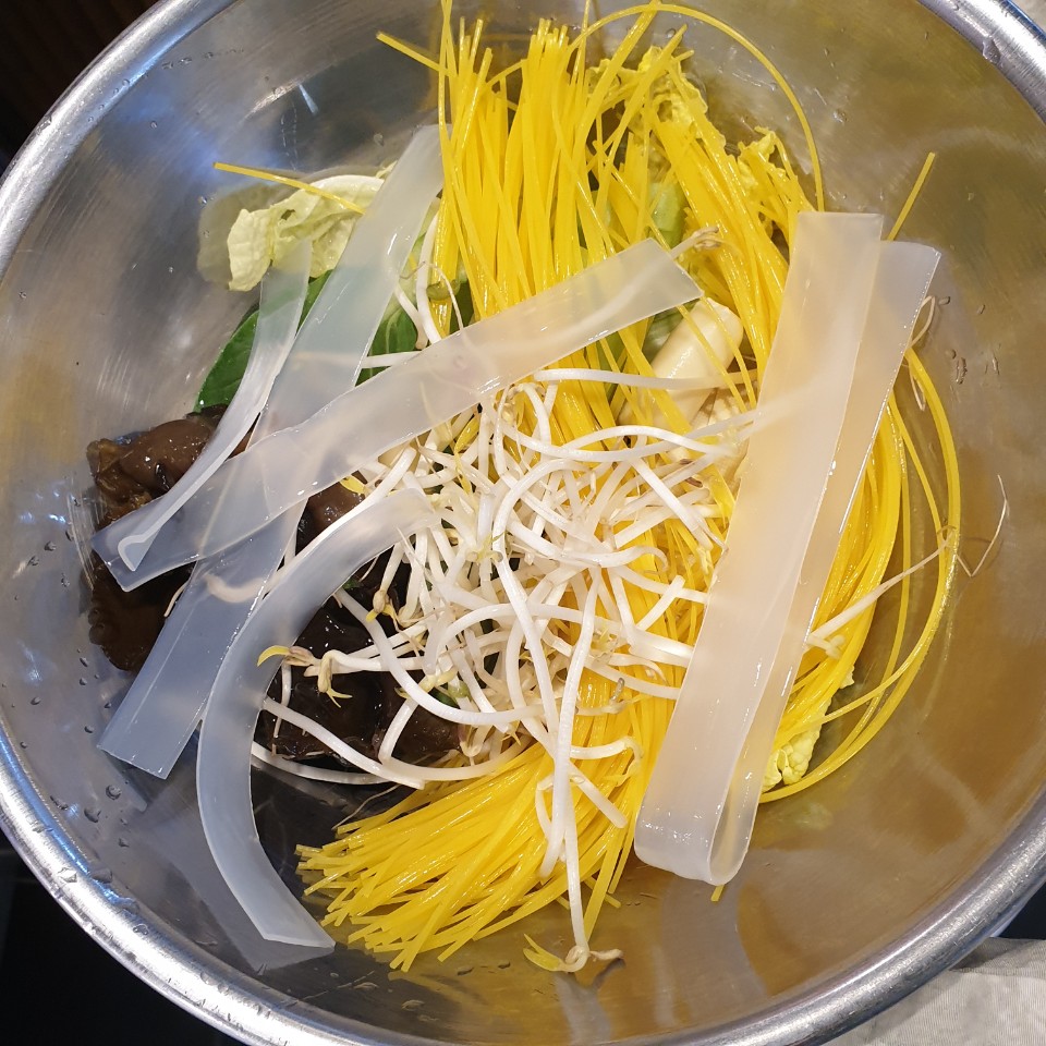 목이버섯과 숙주, 배추, 청경채는 필수로 들어가야 합니다.