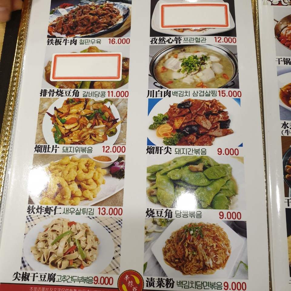 라장훠궈 메뉴판