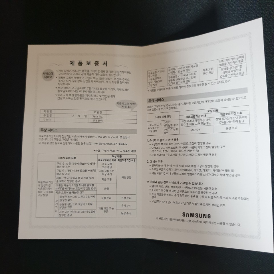 제품 보증서도 같이 있습니다.