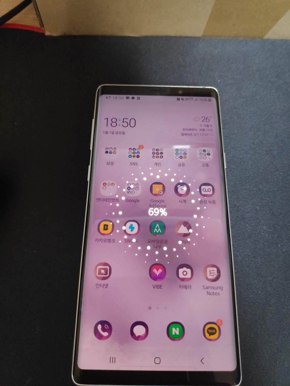 갤럭시 노트 9 보다는 면적이 작습니다. 전부 가려집니다.