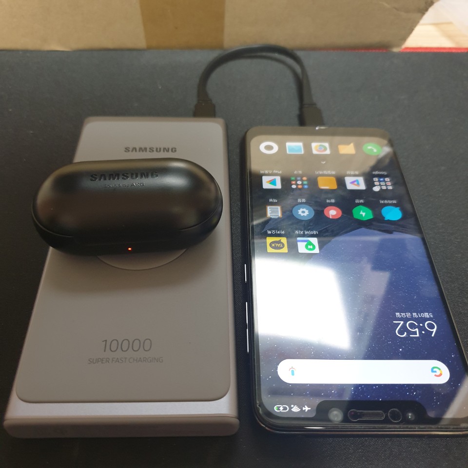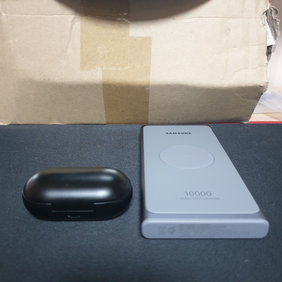 이제 갤럭시 버즈의 위치는 항상 무선 보조배터리 위입니다.