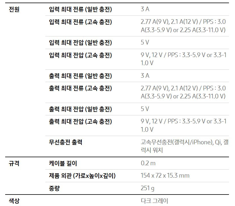 해당 모델은 25W 고속충전이 가능한 제품으로 야외에서 급하게 충전이 필요할 경우 정말 유용한 제품입니다.
