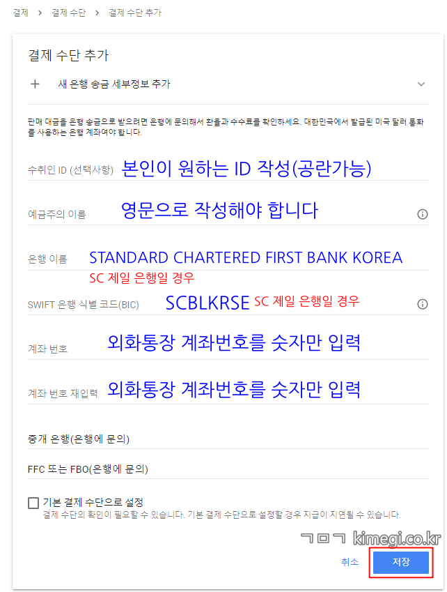 구글 애드센스 계좌를 등록할 때 은행 선택이 중요합니다.
