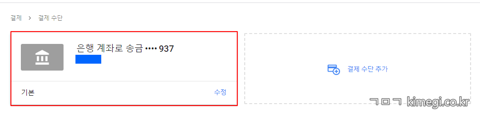 ② 결제 수단 추가에서 [새 은행 송금 세부 정보 추가]를 클릭하세요.