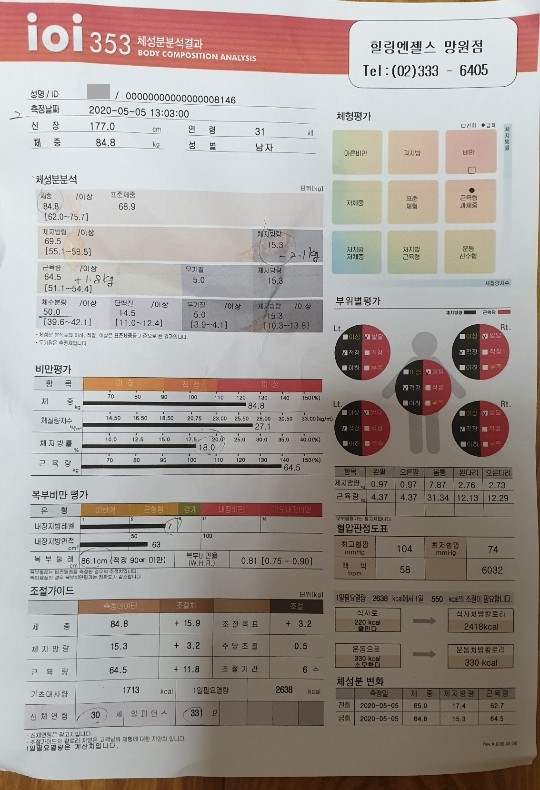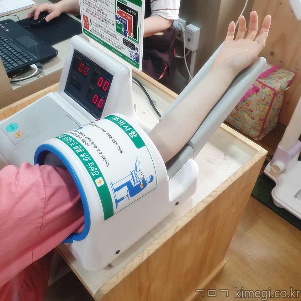 부스에서 나온 뒤 혈압과 인바디를 다시 체크합니다.