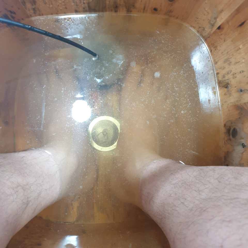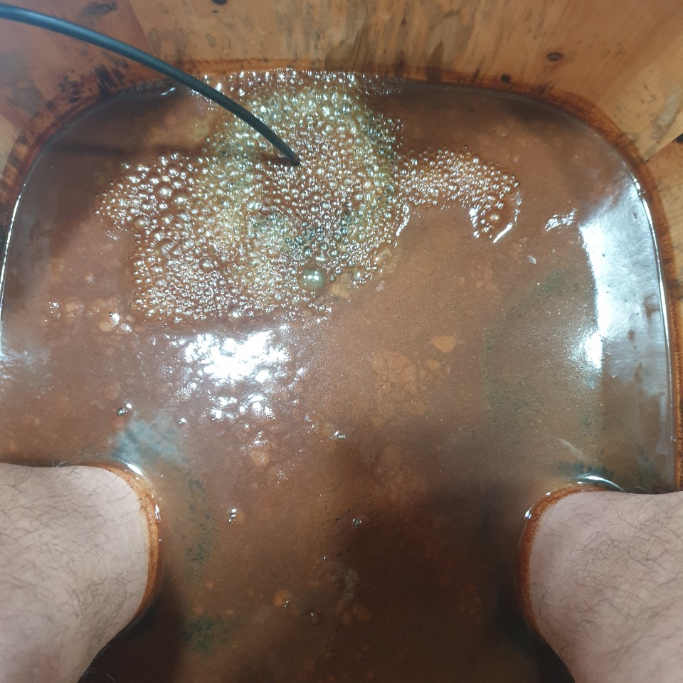 소금을 푼 물에 미세 전류를 흐르게 하여 족욕을 하는 방식입니다.