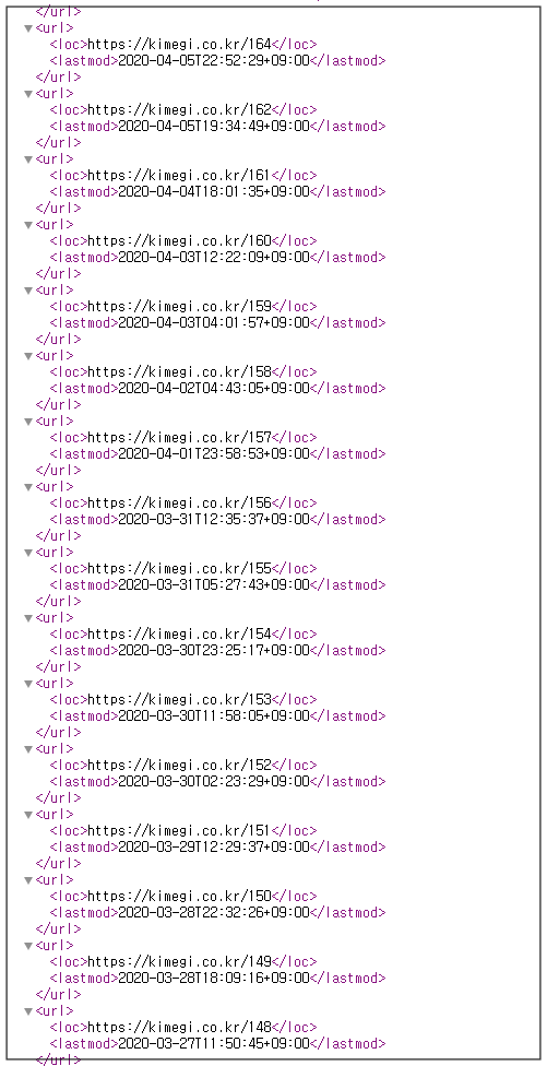 사이트맵 주소를 클릭하시면 아래와 같이 모든 게시글이 새로 추가되어 있습니다.